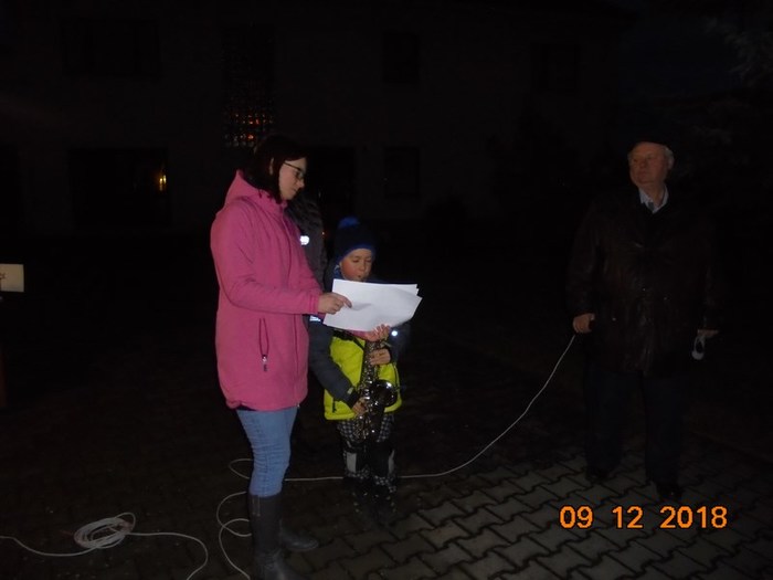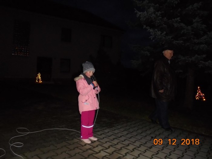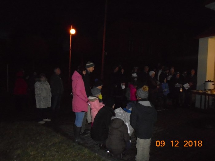V neděli 9. prosince 2018 jsme u místní kapličky slavnostně rozsvítili náš obecní vánoční stromeček. Úvodem nás děti svými básničkami a písničkami přenesly do adventního času. Jak je u nás již tradicí, zazpívali jsme si šest koled, které i leto zpívala celá Česká republika. Za hudebního dobrovodu muzikantů ze Křtomile se Oprostovicemi neslo Pásly obce Valaši, Nesem vám noviny, Narodil se Kristus Pán, Štědrej večer nastal, Půjdem spolu do Betléma a Vánoce, Vánoce přicházejí. Počasí nám přálo, na výborném svařáku a cukroví jsme si pochutnali všichni a domů se nechtělo nikomu.